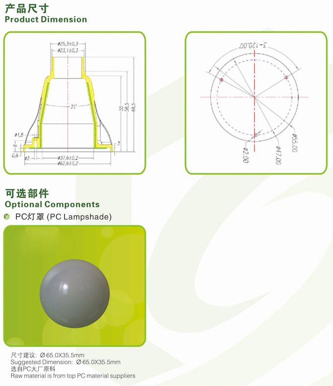 - 更低的整灯系统成本,可配合非隔离式电源方案,AC方案,